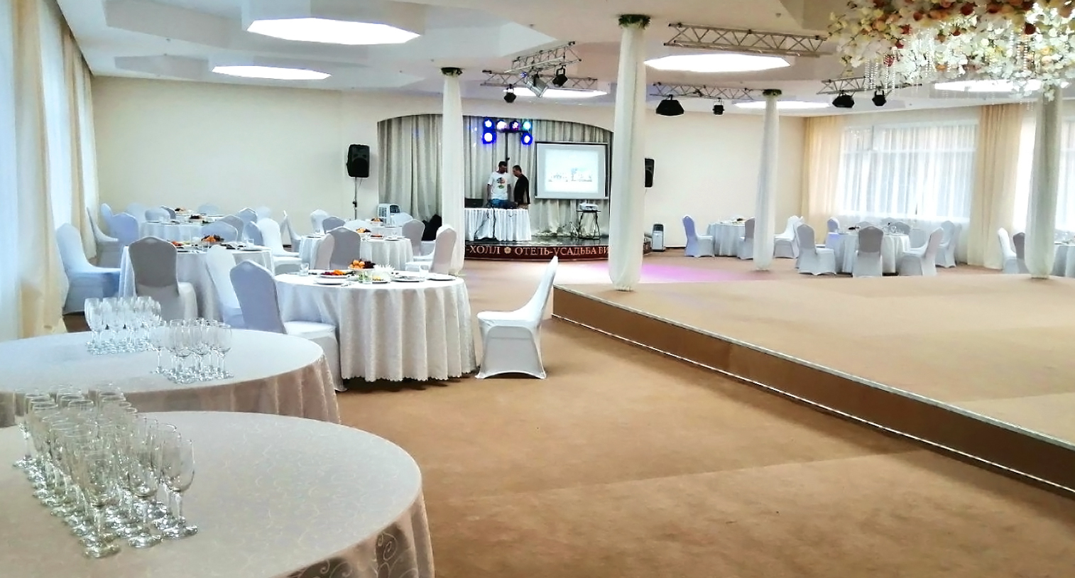 Банкетный зал Усадьбы легко вмещает до 120 человек, оснащен современной аппаратурой и идеально подходит для проведения любых мероприятий.
